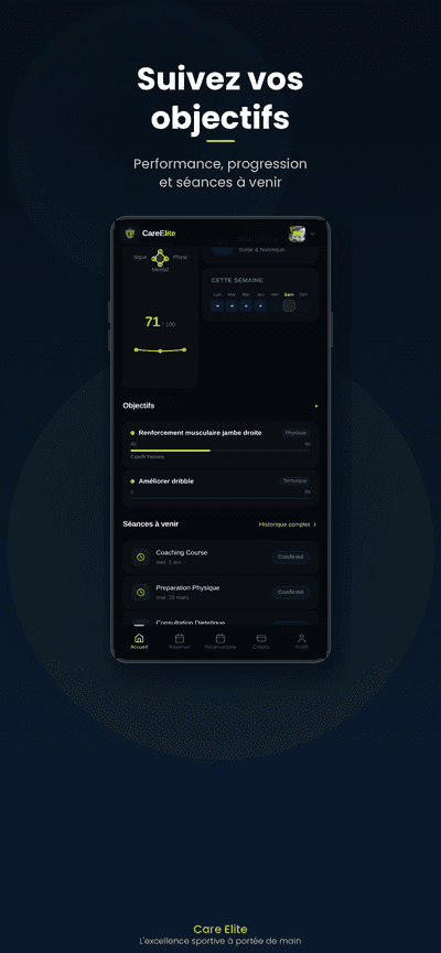Care Elite accompagne les joueurs avec un encadrement professionnel, des opportunités de développement et un réseau dédié à faire évoluer chaque talent vers son plein potentiel.