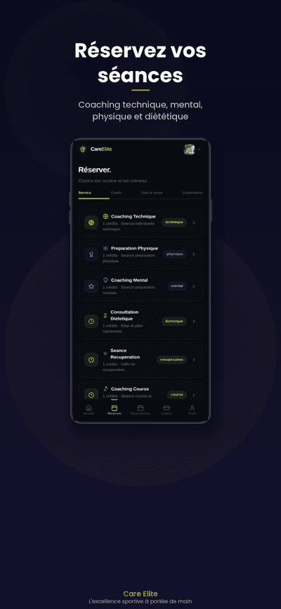 Care Elite est une structure d’accompagnement dédiée aux sportifs souhaitant optimiser leur performance et leur bien-être global.